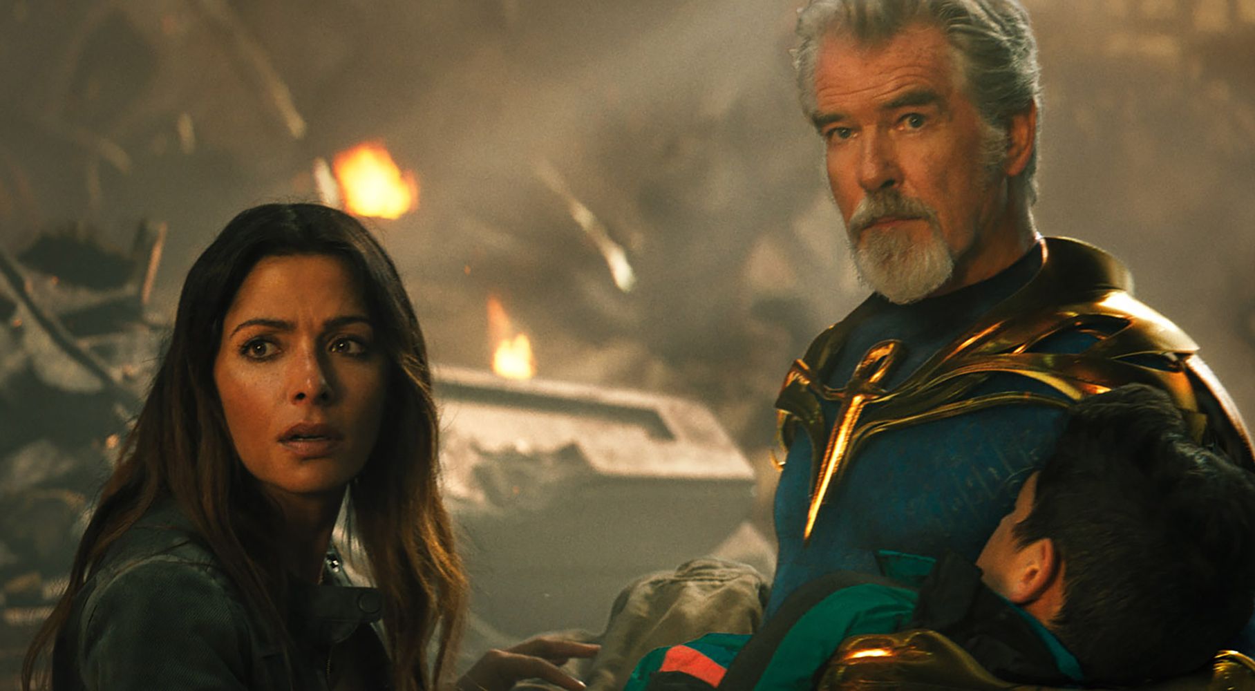 Las actuaciones son, en su mayoría, bastante buenas. No obstante, quien destaca menos, curiosamente, es Johnson. El increíble carisma por el que se ha hecho tan famoso brilla por su ausencia, y el ex-luchador la reemplaza por diálogos repetitivos y expresiones monótonas. Adam no es el personaje más interesante de DC que hayamos visto en la pantalla grande, de eso no hay duda —alguien debió decirle a Johnson que “seriedad” no es lo mismo que “aburrimiento”. Felizmente, Pierce Brosnan logra robarse la película, inyectándole energía, clase y sí, carisma, a su Doctor Fate (y sí, sé que Fate apareció en los cómics antes que Doctor Strange, así que no comenzaré a hacer comparaciones).