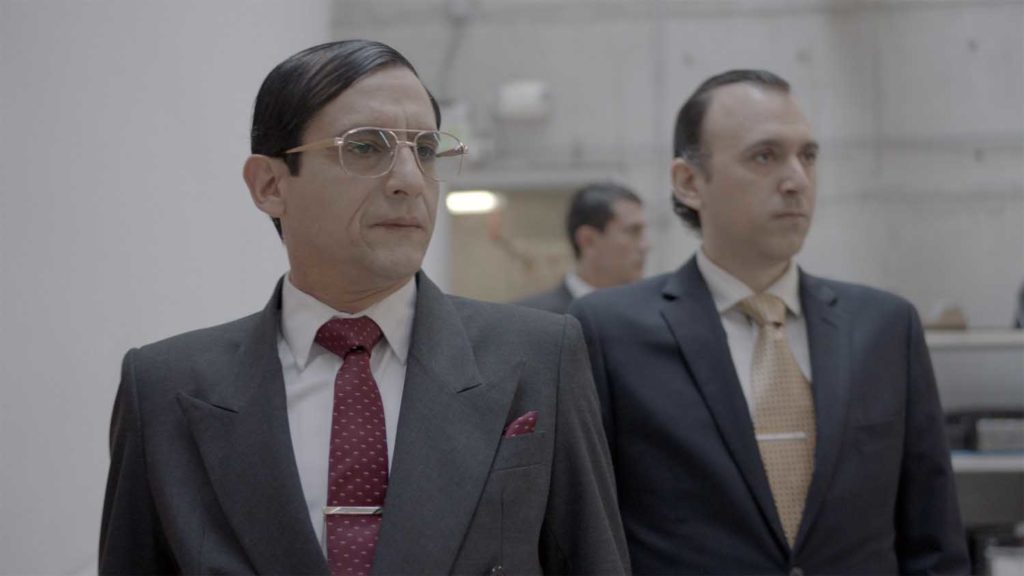 Esto se debe a que, desgraciadamente, “Caiga quien caiga” no funciona particularmente bien como un thriller político. Considerando que la historia se cuenta desde la perspectiva de Ugaz, uno debería sentir una paranoia constante, una sensación permanente de que el gobierno —a veces representado por Fujimori, a veces por el mismo Montesinos— está detrás de él, vigilando cada uno de sus pasos, asegurándose de que no podrá atrapar al ex asesor presidencial. Desafortunadamente, ese no es el caso. La película se mueve con lentitud, mostrándonos los procesos de investigación a los que recurre Ugaz de manera aburrida, plana, convirtiendo a su trabajo en un ejercicio de tedio y monotonía que, bajo la dirección apropiada, hubiera podido ser dramatizado de manera infinitamente más intrigante.