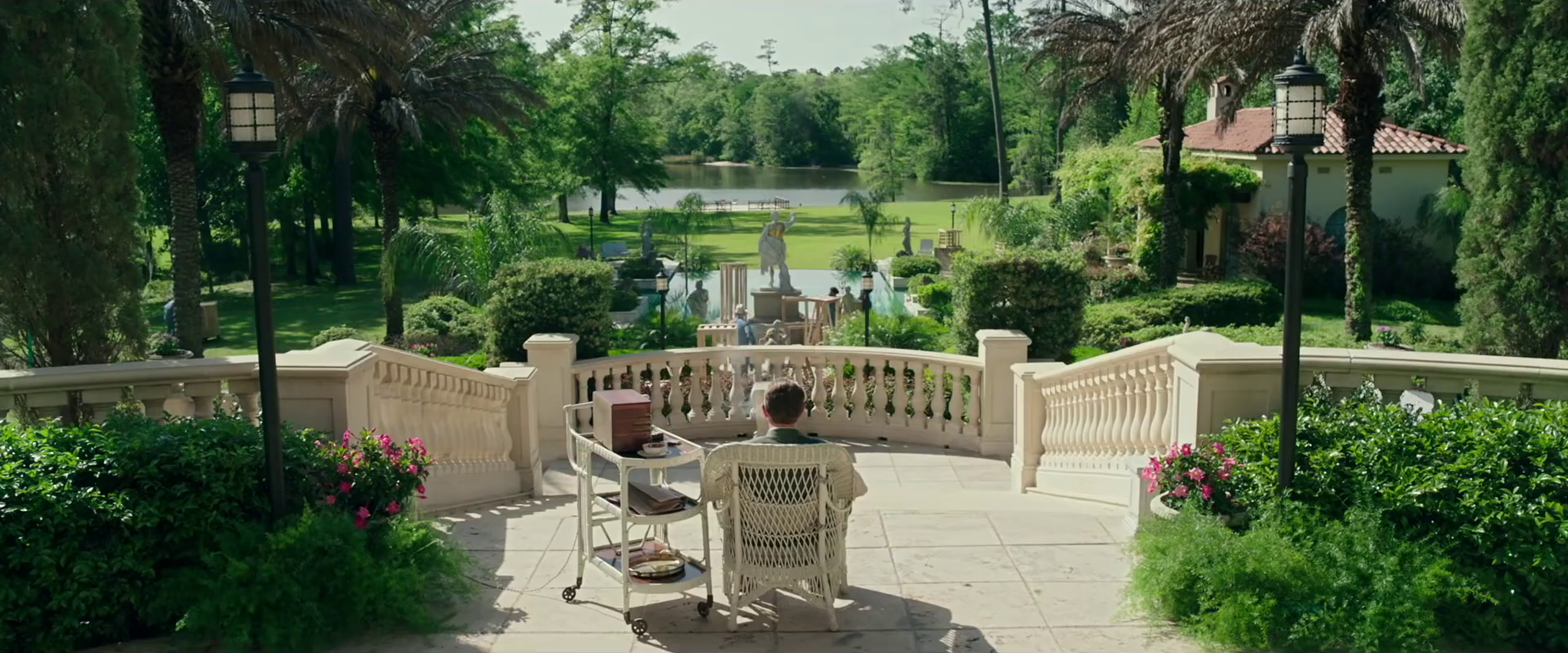 Lo cual es admirable, especialmente luego de su problemática película anterior. Trank utiliza varios recursos para desarrollar a “Capone” casi como una película de terror, mezclando elementos de la realidad y la ficción —y las alucinaciones de su protagonista—, para entregarnos una experiencia algo inconsistente, pero que nunca llega a aburrir al espectador. Consideren, si no, la manera en que construye la “alucinación principal”, por así llamarla, de quince minutos de duración, en donde somos parte tanto de la fastuosidad y los excesos de la vida pasada de Capone —una fiesta en donde Al y Louis Armstrong (¡!) cantan juntos en el escenario—, como de un momento bastante más oscuro. La mansión de Al es presentada, además, como un lugar laberíntico y lleno de sombras, en donde cualquiera —no solo alguien que está peleando con una enfermedad mental— se podría perder. Uno de los personajes secundarios menciona que Capone “está viviendo como un Rey en su mansión”, cuando en realidad parece estar viviendo una pesadilla.