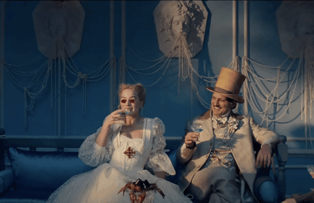 Es cuando los vemos de adultos, más bien, que las cosas se van yendo gradualmente al diablo (tanto para los personajes como para el público). Consciente de que su padre se está quedando sin dinero, Cathy (ahora interpretada por Margot Robbie) decide seducir a su nuevo vecino, el adinerado Edgar (Shazad Latif), por más que todavía sienta algo por Heathcliff (ahora interpretado por Jacob Elordi), quien se ha convertido en un sirviente más de la hacienda (venida a menos) de su padre, apropiadamente llamada Cumbres borrascosas