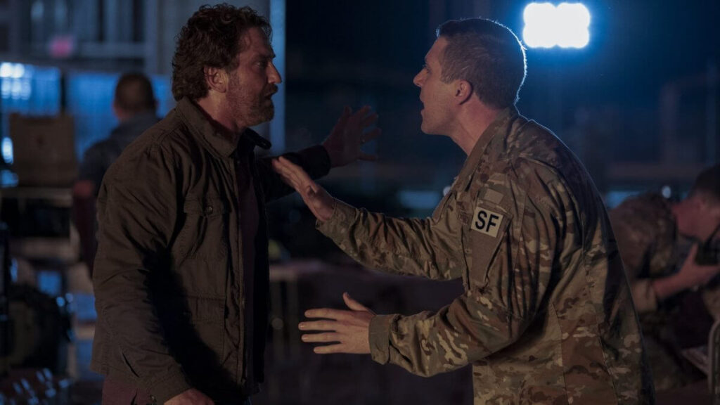 Y eso que los personajes acá no son particularmente tridimensionales u originales. Pero están, felizmente, lo suficientemente bien escritos como para que dé gusto seguirlos. John es un padre abnegado e intenso, que mientras intenta sobrevivir al apocalipsis también trata de compensar algunas de sus deficiencias como esposo. Soy fan de Gerard Butler, pero también soy el primero en admitir que no es el actor con más rango del mundo —no obstante, el escocés artista hace un buen trabajo acá, especialmente considerando que no está interpretando al clásico héroe de acción al que nos tiene acostumbrados. John es relativamente normal, tanto que queda un poco traumado cuando sus circunstancias lo obligan a cometer un acto imperdonable.