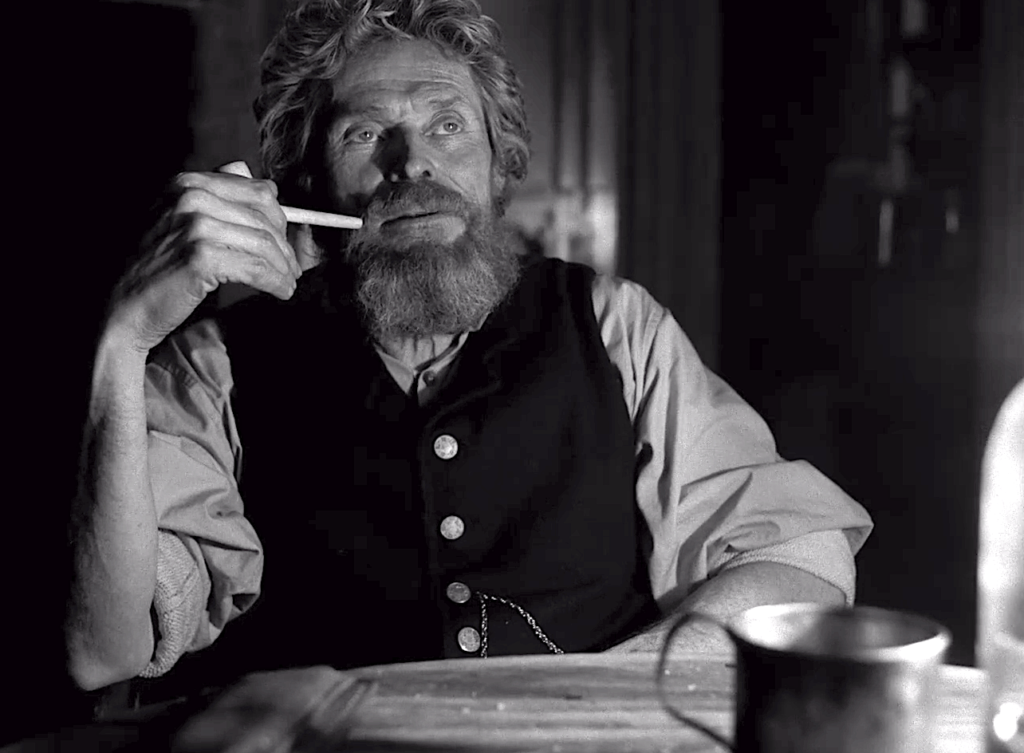 Tanto Willem Dafoe como Robert Pattison dan magníficas actuaciones. El primero es casi una parodia del marinero rudo de antaño; pura barba y bigote y pedos y alcohol chorreándose por su mentón. Dafoe tiene algunos de los monólogos más memorables de la cinta, y convierte a su personaje en una figura misteriosa, la cual trata de engañar a Ephraim, desorientándolo y confundiéndolo. Agréguenle a eso el hecho de que muchas veces lo vemos desde la perspectiva de Ephraim, y Thomas se convierte en un personaje muy complicado de interpretar. Por su parte, Pattison maneja una energía más apagada como Ephraim (al menos al inicio), lo cual ayuda a desarrollar su lento descenso a la locura de manera más creíble. Sus ojos se van haciendo más grandes; sus actitudes más alocadas y sus reacciones más imprevisibles. Quienes lo consideren todavía como “El Vampiro Brilloso de Crepúsculo” deberían darse cuenta, con esta actuación, que Pattison ya superó dicho rol hace bastante tiempo. Me muero de curiosidad por ver lo que hará con Batman en la película de Matt Reeves.