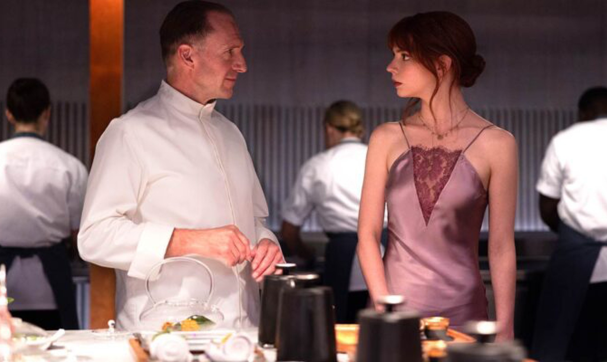 “El Menú” tiene como protagonistas a Margot (Anya Taylor-Joy) y Tyler (Nicholas Hoult), una pareja que formará parte de una experiencia culinaria sin igual. Están siendo llevados, como parte de un grupo de doce personas privilegiadas, a una isla privada, en donde serán servidos un menú especial por parte de un afamado chef llamado Slowik (Ralph Fiennes). Se trata de uno de los chefs más famosos del mundo, tanto así que ha logrado, con el tiempo, cobrar sumas ridículas de dinero por los platos que prepara en sus restaurantes. Tal y como dice en la película: la comida que él prepara no debe ser, bueno, comida, si no más bien saboreada.