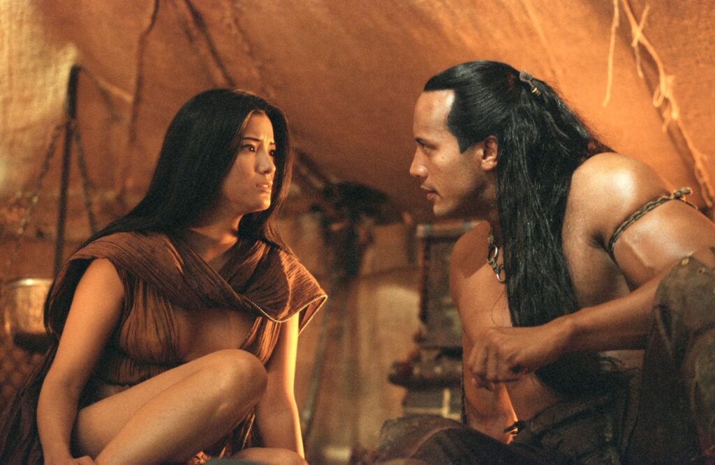 “El Rey Escorpión” se lleva a cabo en el Medio Oriente en “las épocas antes de las pirámides”, y tiene como protagonista al personaje del título, en realidad llamado Mathayus (Johnson), un asesino que es contratado por un Rey llamado Pheron (Roger Rees, de “Robin Hood: Men in Tights”) para acabar con Memnon (Steven Brand, de “Saw X”), un autócrata tirano que quiere acabar con todos sus enemigos y conquistar el mundo. ¿Y cómo es que Memnon ha logrado obtener tanto poder? Resulta que tiene de esclava a una vidente (Kelly Hu), quien puede ver el futuro y le ayuda a obtener todo tipo de victorias militares.