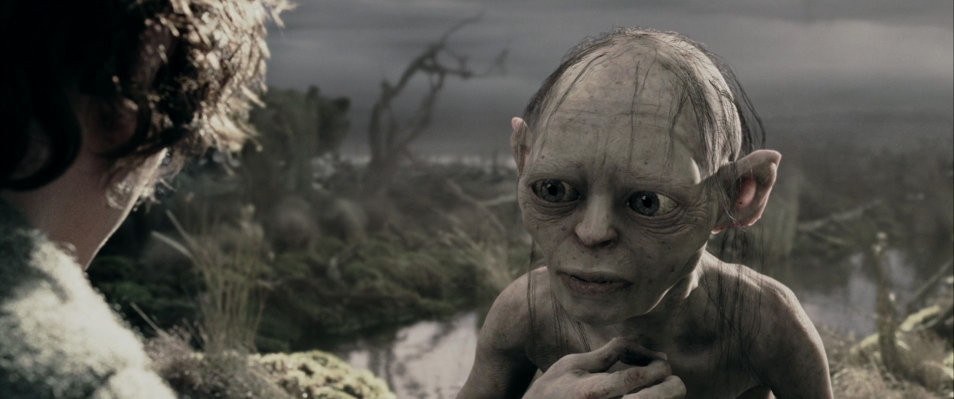 Lo cual, por supuesto, nos deja con la historia de Sam y Frodo. Es aquí donde sí encontramos algo interesante, especialmente en los que se refiere a Gollum. Traído a la vida con expertise por el gran Andy Serkis, se trata de un personaje complejo, conflictivo, que cuenta con una personalidad doble. Primero está el inocente Sméagol, que solo quiere ayudar a sus amigos Hobbits y llevarlos a donde quieren ir. Y luego está Gollum, la criatura corrompida por el Anillo Único, que se quiere deshacer de sus nuevos maestros para quedarse con la joya de Sauron. Esto resulta en escenas hipnotizantes que ponen en evidencia los considerables talentos de Serkis, uno de los pioneros de la actuación virtual, y quién más adelante interpretaría a King Kong para el mismísimo Jackson, y al líder de los simios, César, en la trilogía de “El Planeta de los Simios”. Su Gollum, no obstante, es quien lo comenzó todo, y es todo un deleite verlo en pantalla.