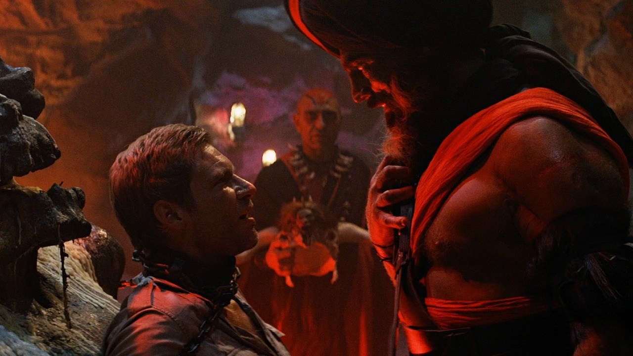 Si la primera cinta de “Indiana Jones” era una arquetípica aventura llena de persecuciones, acción y violencia visceral, “Indiana Jones y el Templo de la Perdición” es una experiencia bastante más oscura. Mucho se ha dicho de que tanto Spielberg como Lucas estaban pasando cada uno por un divorcio durante la producción de esta película, y se nota. “Indiana Jones y el Templo de la Perdición” tiene de todo: sacrificios humanos, corazones siendo arrancados de pechos, personajes comiendo insectos, serpientes y cerebros de mono, y niños esclavizados. Es bastante, y ciertamente no es apto para niños —razón por la que la clasificación de edades PG-13 tuvo que ser inventada, parcialmente, debido al estreno de esta película.