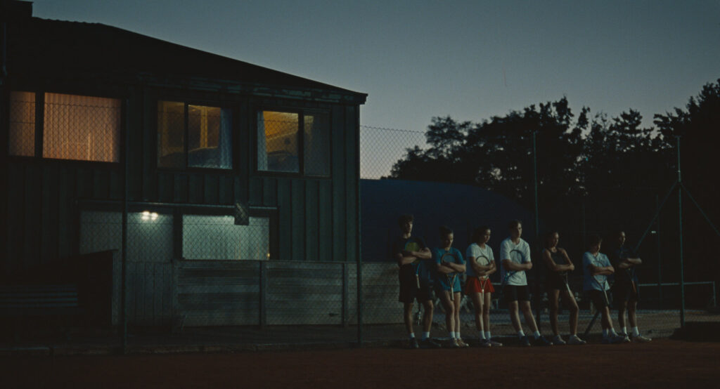 Todo esto es presentado de forma visualmente impactante por Van Dijl y su director de fotografía, Nicolas Karakatsanis (quien ya ha incursionado en Hollywood con producciones como Cruella o Dumb Money). La cámara en Julie Keeps Quiet se mueve poco, dejando que su protagonista entre y salga del encuadre mientras entrena, siguiéndola ocasionalmente con movimientos duros y precisos. Muchos de los encuadres tienen a sus personajes en un extremo de la imagen, como si estos quisieran escaparse de la situación en la que están, y varias escenas son grabadas con lentes teleobjetivos, como para dar la sensación de que estamos observando todo desde lejos, de manera pasiva. Es interesante: narrativamente, Julie Keeps Quiet se centra en el personaje del título sin perderla de vista, pero visualmente, se mantiene a la distancia, usando, además, una estética de sombras contrastada y saturadas y mucha textura.
