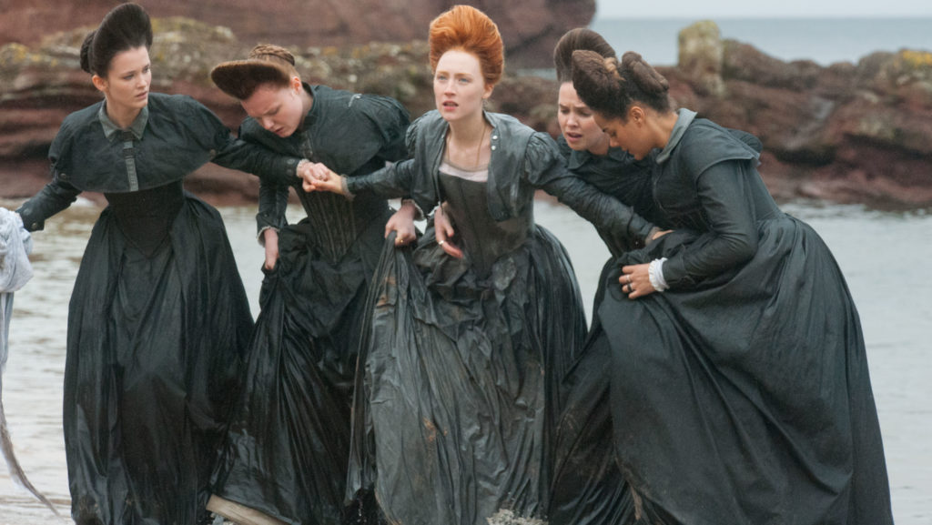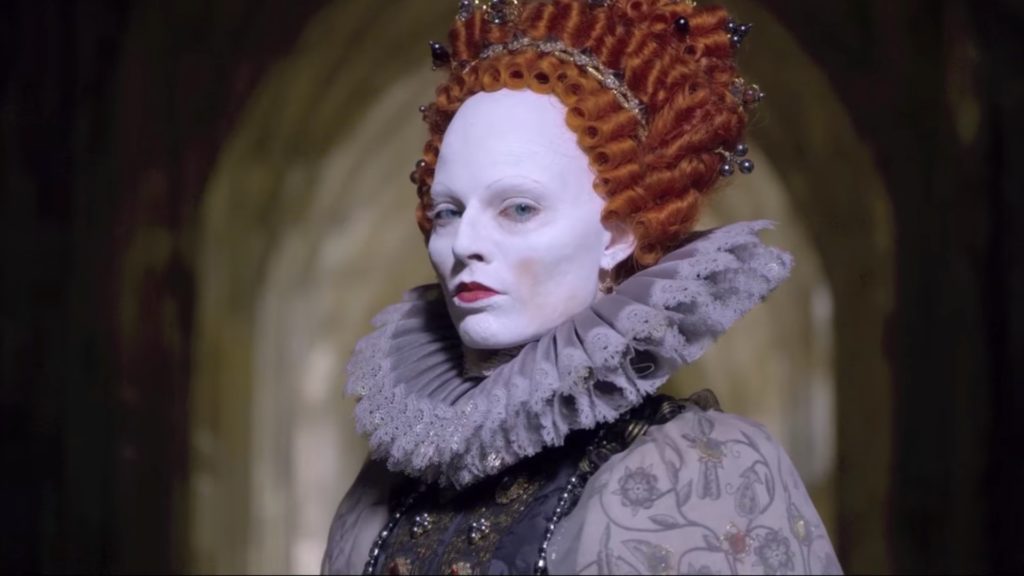 La cinta se lleva a cabo durante los seis años de reinado de María Estuardo (Saoirse Ronan). No obstante, también incluye un prólogo y un epílogo —algo innecesarios— en donde la vemos segundos antes de su muerte (por decapitación). A pesar de llevar el titulo de “Las dos reinas” en castellano (el nombre original en inglés es “Mary Queen of Scots”), la película realmente no nos presenta una historia que entrelace las vidas de María y Elizabeth (Margot Robbie). De hecho, la verdadera protagonista es la primera, mientras que la segunda es relegada a un rol secundario, resultante únicamente durante los últimos veinte minutos de metraje. El resto de la cinta se dedica a detallar las conspiraciones que se llevaron a cabo entre los consejeros de María; su relación con su esposo, Henry (Jack Lowden), y por supuesto, sus intentos por unificar Inglaterra con Escocia.