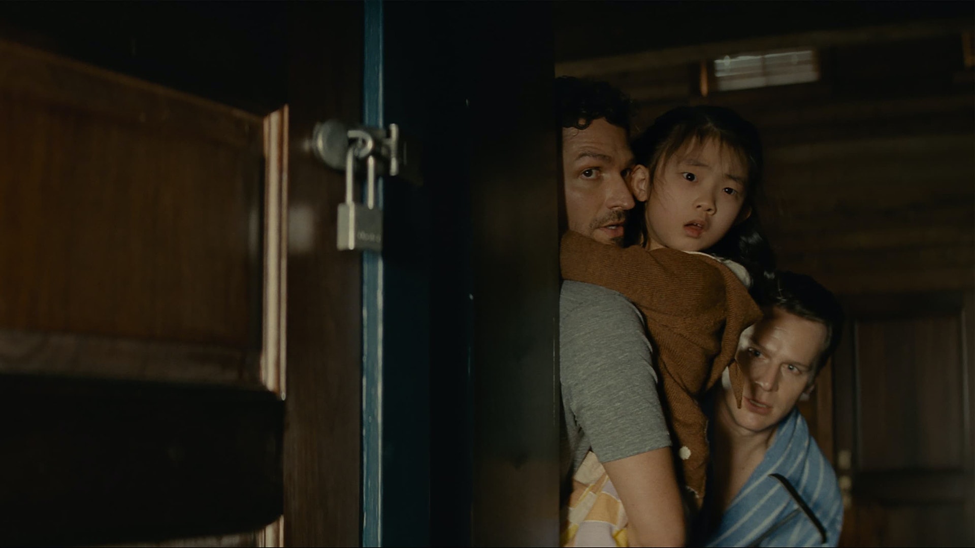 Lo cual es una pena, porque como ya se ha mencionado, la idea básica de “Llaman a la puerta” está llena de potencial. Al menos al inicio, es un misterio, especialmente porque lo percibimos todo desde la perspectiva de nuestros inocentes protagonistas. Primero la de la pequeña Wen (una excelente Kristen Cui), y luego la de sus padres adoptivos, Eric (Jonathan Groff) y Andrew (Ben Aldridge). Ellos no saben qué quieren estos extraños, y por ende, nosotros tampoco. Ellos viven una vida normal, y de pronto son interrumpidos por un grupo de —aparentes— locos que les dicen que tienen que sacrificar a un miembro de su familia para prevenir el apocalipsis. Tienen que estar insanos, ¿no? No pueden estar hablando en serio, ¿verdad?