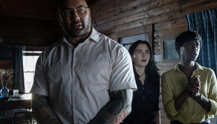 La premisa de “Llaman a la puerta” es intrigante: cuatro extraños que se meten a una cabaña en el medio de un bosque, poblada por una familia inocente. ¿Qué hacen ahí ¿Qué es lo que quieren? ¿O por qué comienzan a hablar sobre el fin del mundo? Se trata de una idea llena de potencial, que lamentablemente no es del todo bien aprovechada por la película. No me tomen a mal — “Llaman a la puerta” no es una experiencia terrible ni mucho menos. Especialmente durante la primera mitad de metraje, logra cautivarnos con un desarrollo lento por extremadamente tenso de la premisa ya expuesta. Pero es durante la segunda mitad que se comienza a desmoronar, concluyendo de manera bastante previsible.