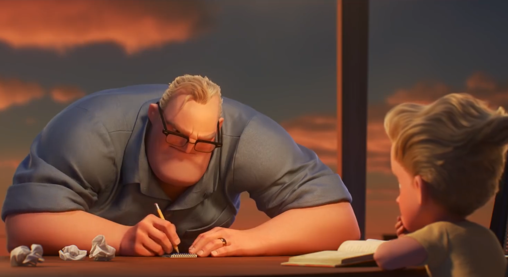 Ahora bien, antes de que comiencen a comentar los paranoicos que están molestos porque, por primera vez en casi cien años, los personajes femeninos están recibiendo la atención en vez de los típicos héroes machos y blancos, cabe recalcar que el nuevo rol de Elastigirl se siente como un desarrollo natural dictado por la narrativa, y no como un elemento forzado para apaciguar a los fanáticos de lo políticamente correcto (¿como yo?). La trama de “Los Increíbles 2” funciona porque repite algunos elementos de la primera película, dándoles un giro novedoso —lo cual resulta en la adrenalina del hilo narrativo de Helen, y la comedia del hilo narrativo de Bob— y desarrollando de manera más profunda a la familia entera.