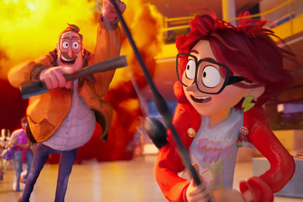 Porque, fuera de la trama en sí, el tema principal de “La familia Mitchell vs. Las Máquinas” está relacionado a la familia. No, no es tratado con mucha sutileza, pero como se trata de una película que debe ser disfrutada (y entendida) por niños, aquella (relativa) torpeza es comprensible. Además, es este aspecto de la narrativa el que resulta en los momentos más emotivos de la película. De manera similar a las producciones de Pixar, “La familia Mitchell vs. Las Máquinas” mezcla muy bien la acción y la emoción de una historia sobre un apocalipsis robótico, con momentos más bien sentimentales, en donde vemos a nuestros protagonistas dándose cuenta de que, por más de que tengan muchas diferencias, igual tienen que escucharse entre ellos y tratar de reconectarse. Puede que un evento como este sea una situación bastante extrema para ayudar a que, específicamente, un padre y una hija mejoren su relación, pero sirve para efectos de lo que el filme está intentando hacer.