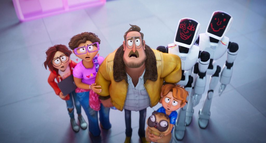 Pero todo esto es interrumpido por, lo crean o no, un apocalipsis robótico. Resulta que la compañía tecnológica Pal Labs (una clara sátira de Apple) acaba de develar a un nuevo modelo de acompañante casero: un robot que reemplazará a los smartphones Pal que (literalmente) todo el mundo había estado usando hasta ese momento. Pero cuando la inteligencia artificial detrás de los celulares, PAL (Olivia Colman) se entera de esto, decide rebelarse frente al C.E.O. de Pal, Mark Bowman (Eric André), y reprograma a todos los robots ya construidos para que salgan de la base de Pal Labs, y secuestren a toda la humanidad. ¿Su objetivo? Mandar a todos los seres humanos al espacio, para que todas las máquinas de Pal Labs puedan adueñarse del planeta (al más puro estilo de la franquicia de “Terminator”).