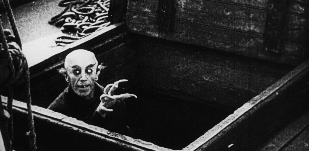 Mucho se puede escribir, entonces, sobre la relación entre el sexo y el cine de terror, y la manera en que muchas producciones cinematográficas trataban de transmitir valores puritanos a través de historias de monstruos, criaturas y asesinos (por algo los personajes vírgenes solían ser los sobrevivientes en los slashers de los 80s y 90s). Pero muy aparte de eso —y sin saber exactamente cuáles eran las intenciones de Murnau como cineasta—, Nosferatu también sirve como una gran representación del expresionismo alemán —tanto a nivel de dirección de arte como de interpretaciones actorales— y de cómo se hacía cine hace más de cien años. Es un producto de su época al cien por ciento, y lo más cercano que podemos tener —junto a otras producciones de la misma década, claro está— a una máquina del tiempo.