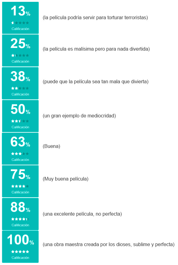 En realidad había estado pensando en hacer esto desde hace ya un tiempo… pero no estaba seguro. Evidentemente, ahora sí lo estoy. Así que lo haré oficial de una buena vez: comenzaré con un sistema de calificación básico para cuando escriba análisis de películas. Creo que hará que mis artículos sean más ordenados, y también ayudará a quienes quieran saber mi opinión sobre una película pero les de flojera leer el análisis entero (ojalá no haya muchos de esos….)