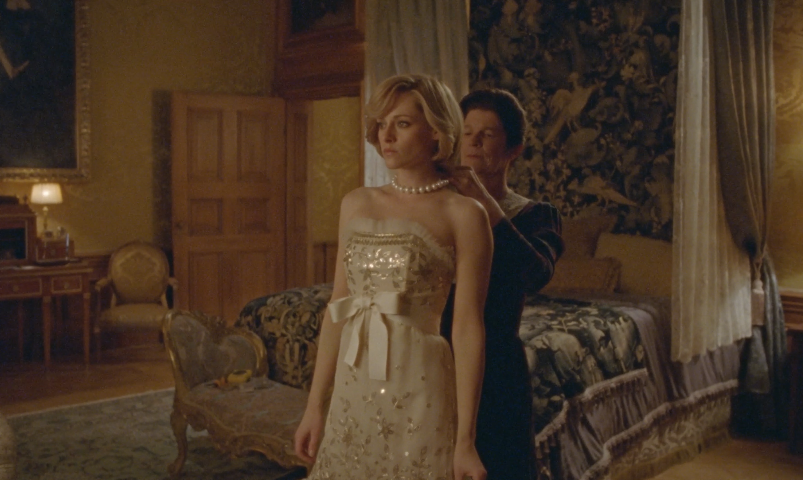 No es casualidad, por ejemplo, que la película se lleve a cabo casi enteramente en una sola locación. O que veamos a Diana (Kristen Stewart) casi siempre sola, deambulando por los espacios del castillo de Sandringham, o siendo ignorada por su esposo, Charles (Jack Farthing). De hecho, estos dos comparten una sola escena importante, en donde él termina diciéndole que “tendrá que obligar a su cuerpo a hacer cosas que odiará”. A estas alturas del partido, lo que tienen no es un matrimonio o romance. Ni siquiera es una relación —Diana solo quiere a sus dos hijos, siendo ellos la única razón por la que soporta vivir una pesadilla. Diana sabe que Charles la está engañando, y está harta de todo lo que representa la Corona.