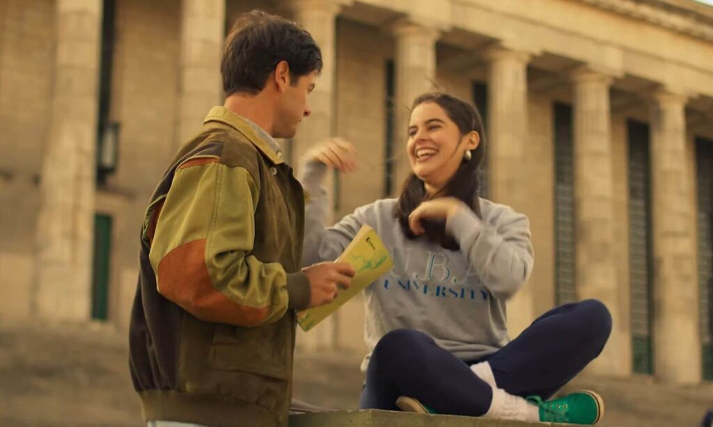 Por otro lado, la dirección de Sergio Barrio maneja una factura técnica correcta, haciendo uso de cámaras en mano y movimientos bien planteados, para otorgarle una sensación de inmediatez palpable a la historia. Solo noté un par de momentos de calidad audiovisual dudosa (como cierto movimiento de cámara extremadamente torpe en una breve escena de biblioteca), los cuales no ayudan a arruinar la experiencia. Y para recrear la Lima de los años 90, Barrio y su equipo utilizan toda suerte de recursos, desde el vestuario adecuado para dicha época, hasta vehículos, locaciones como el Coliseo Amauta, las canciones más famosas del programa “Nubeluz”, y técnicas como planos de poca distancia focal, donde los fondos muy desenfocados pueden esconder elementos anacrónicos propios de la Lima contemporánea. El único elemento de recreación que me fastidió fue la camioneta que Mónica le regala a su padre —una Subaru que estoy muy seguro es de los años 2000, y que definitivamente no existía en la época de “Nubeluz”.