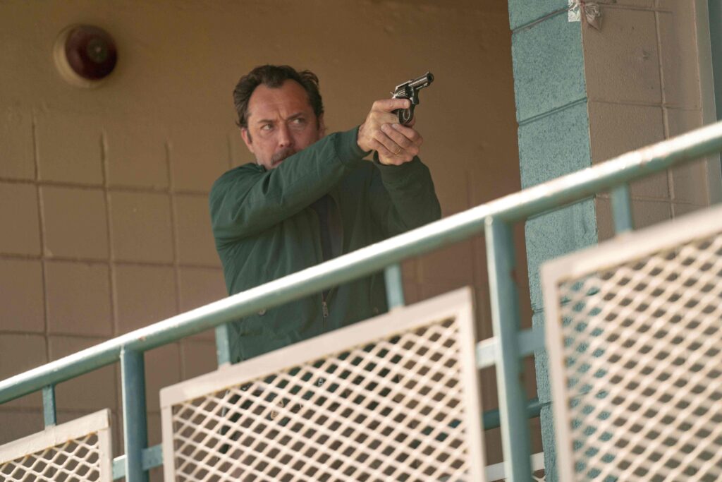 Lo cual, felizmente, no hace que los protagonistas se perciban como unos inútiles. De hecho, algo que el filme hace muy bien, es desarrollar tanto a Terry como a Jamie como verdaderos seres humanos —con imperfecciones y problemas propios. El primero, por ejemplo, habla constantemente de su familia (la cual nunca vemos), y se infiere tiene problemas de salud —cuenta con una cicatriz en el pecho, fuma cigarrillos como si no hubiese un mañana, y le sangra la nariz en momentos de mucho estrés. Law, dejando de lado cualquier look o actitud de estrella cine, interpreta a Terry como alguien constantemente cansado, que carga con sus propios demonios internos, y que sigue adelante por pura ira.