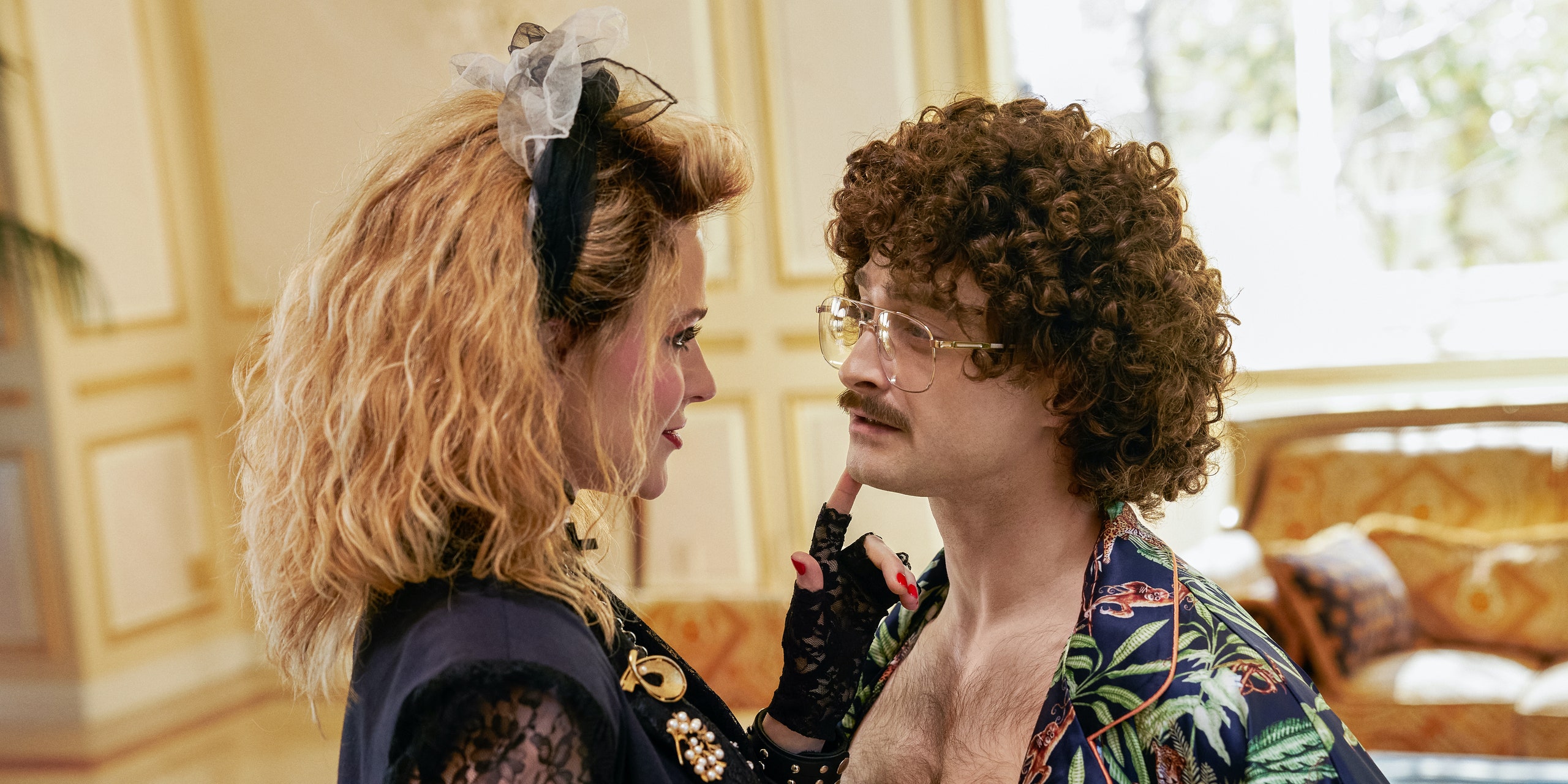 Felizmente, dicha idea ha resultado en un producto final realmente divertido y gracioso. “Weird: The Al Yankovic Story” comienza de manera más o menos convencional, introduciéndonos a un joven Al que no es respetado por sus padres —él quiere dedicarse a la música y el acordeón, pero ellos preferirían que “mejor no sea él mismo y que no haga nada de lo que le gusta”. Luego de eso, lo vemos ya de adulto, siendo interpretado por un Daniel Radcliffe que, fuera de una peluca y un bigote, no se parece en nada al verdadero Al (pero eso es parte del chiste). Es a partir de este momento que lo vemos triunfando repentinamente, obteniendo toda suerte de premios y éxitos, y pasando por todos los clichés de la película biográfica: se pelea con los otros miembros de su banda, se mete con una mujer que termina siendo una pésima influencia para él (Madonna, interpretada por Evan Rachel Wood), y hasta se involucra con el cártel de Pablo Escobar (Alberto Castro).